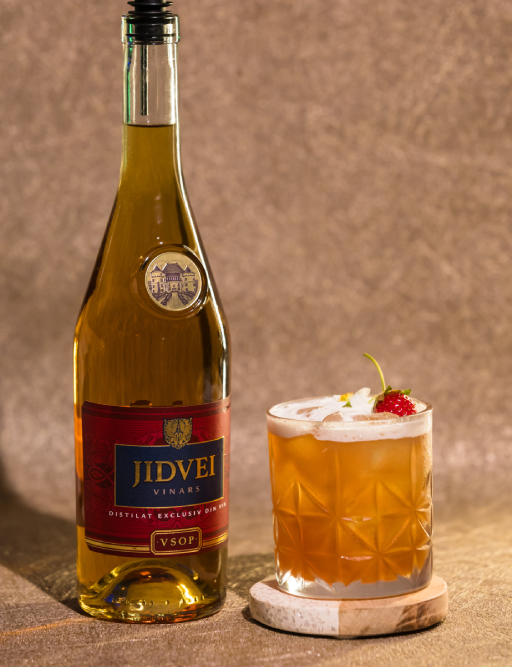 Într-un shaker se adaugă, pe rând, 50ml Vinars Jidvei VSOP, 30ml sirop de vin spumant Scintti Fetească Regală cu căpșuni*, 10ml Verjus Jidvei. Apoi, se completează cu gheață și se agită cu putere.