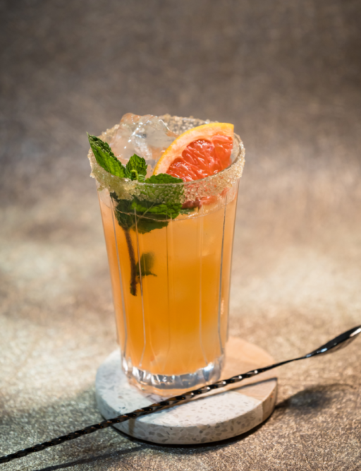 - DECOR Rim de zahăr brun, o felie de grepfruit & un spring de mentă