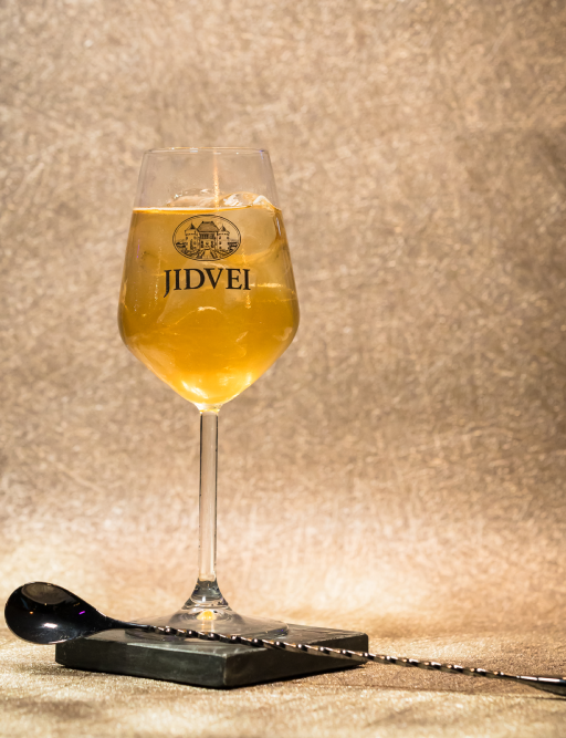 Se toarnă 10ml Verjus Jidvei pentru a oferi băuturii o notă acidă subtilă care să echilibreze dulceața siropului.