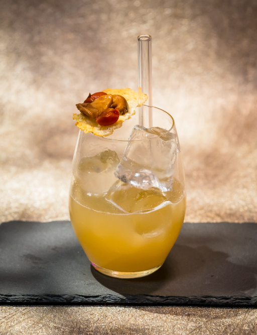 *Pentru a pregăti Funky cordialul, primul pas este pregătirea caramelului. Așa că, într-o cratiță, se topește zahărul alb pentru a obține o bază de caramel. Următorul pas este infuzarea caramelului cu vinul. Se toarnă Jidvei Traminer Roz CIB 2018 peste caramel și se oprește focul pentru a permite aromelor să se îmbine armonios. Apoi se vor prepara ciupercile. Într-o tigaie se rumenesc 200g de ciuperci pleurotus până devin aurii și fragede. Se amestecă ciupercile rumenite cu baza de caramel și vin. Se incorporează 80g de parmezan ras pentru a aduce un plus de savoare umami cordialului. Pentru a ajusta și echilibra nivelul de zahăr, se adaugă Verjus Jidvei, pentru a obține gustul dorit.