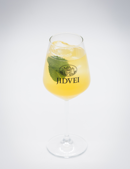 Se completează băutura cu 100ml Jidvei Grigorescu Sauvignon Blanc, amestecând ușor pentru a păstra delicatețea vinului.