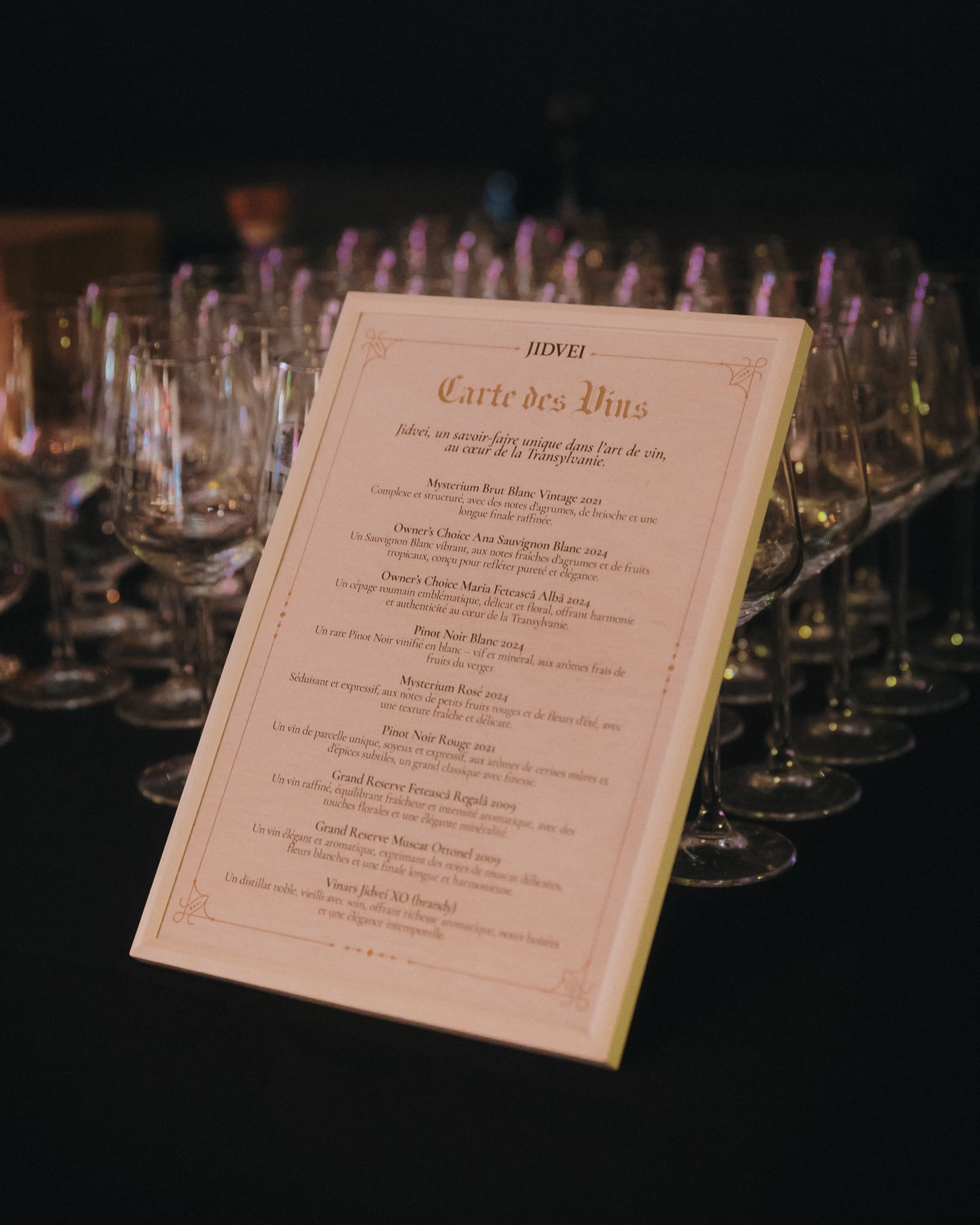 Lansat în premieră internațională, într-o ediție limitată de doar 5.000 de sticle numerotate individual, Vinarsul Jidvei XO și-a făcut debutul chiar la inaugurarea retrospectivei, în foyer-ul Bibliotecii mk2. Critici de film, jurnaliști culturali, diplomați și public francez și român au descoperit în premieră acest distilat de colecție, maturat aproape un deceniu în butoaie de stejar transilvănean, într-o atmosferă de sărbătoare discretă, unde gustul a completat discursul despre film și cultură.
